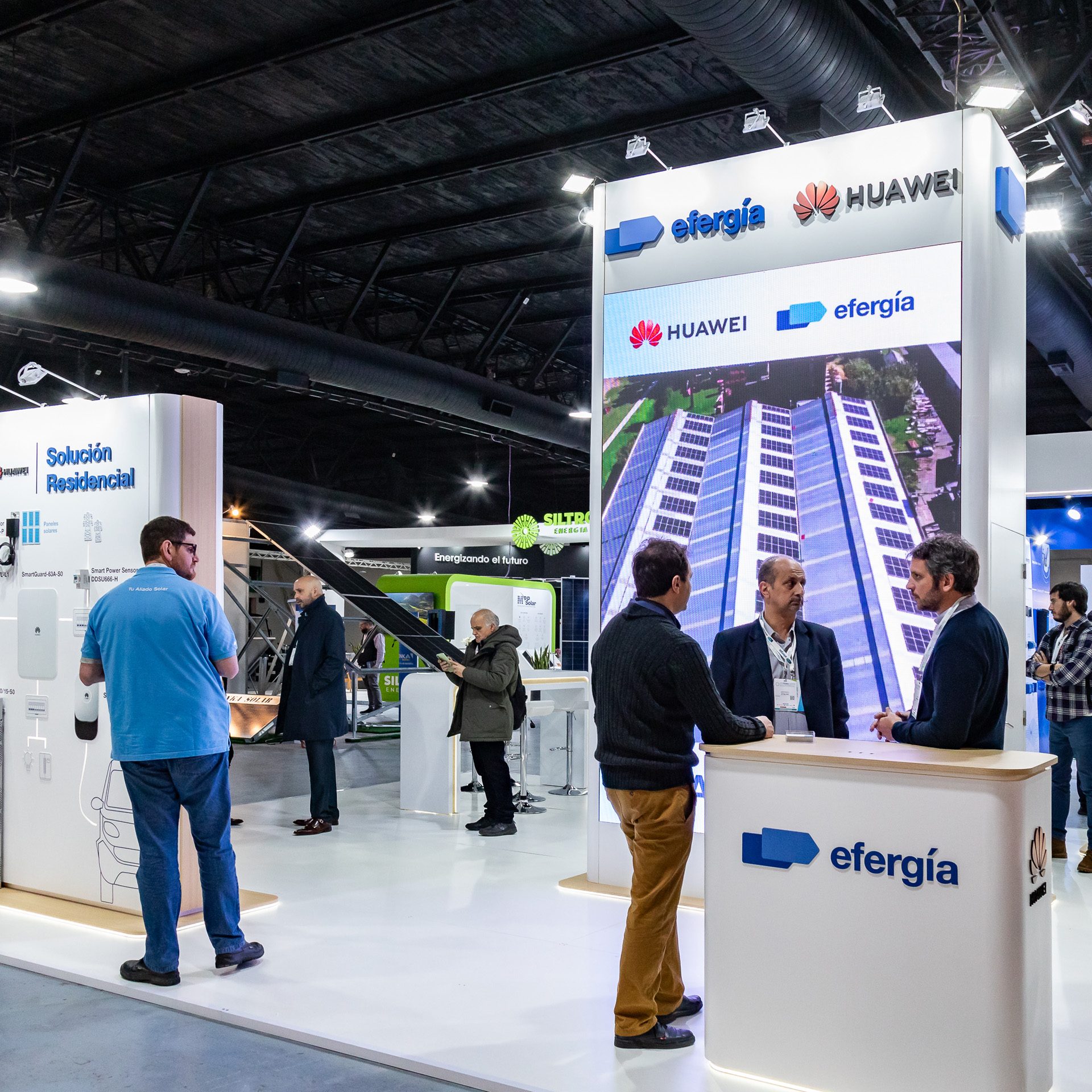 Realizamos y producimos el stand de Efergía y Huawei, destacando tecnología de vanguardia y soluciones energéticas innovadoras.